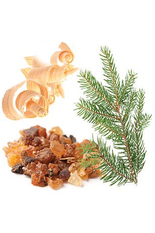 Эфирные масла ели, камфары, ладана, пижмы голубой, ромашки голубой, фракционное кокосовое масло.